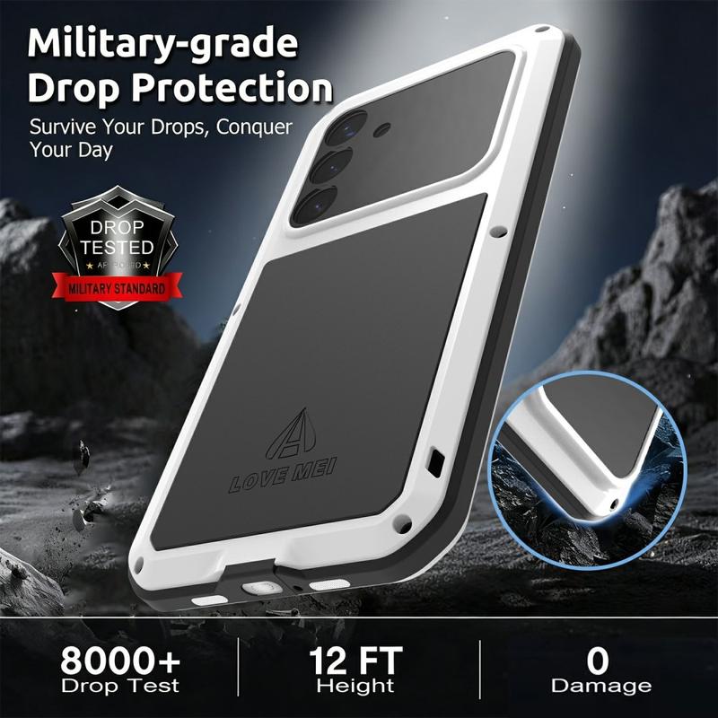 Hybrydowe etui Love Mei Powerful zmienia Samsung Galaxy S26+ w fortecę. Łącząc w sobie ochronę klasy wojskowej, precyzyjną inżynierię i wygodę bezprzewodowego ładowania, zapewnia, że telefon jest gotowy na wszystko - od życia w mieście po ekstremalne warunki.