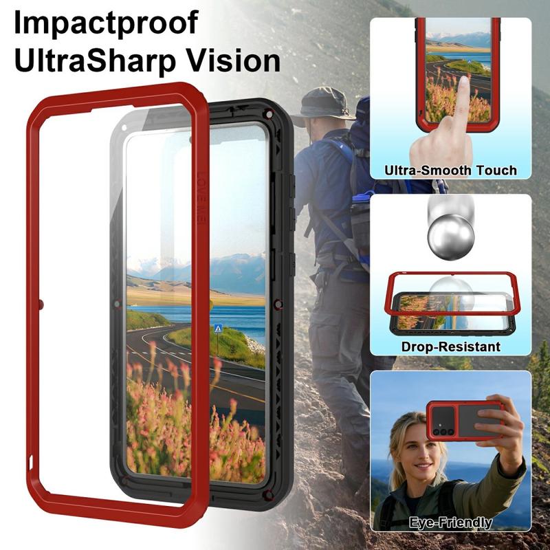 - Konstrukcja z blokadą śrubową - wzmocniona bezpiecznymi narożnikami z blokadą śrubową, które mocno uszczelniają obudowę, zapewniając ochronę telefonu podczas upadków, wstrząsów i nieostrożnego obchodzenia się z nim.