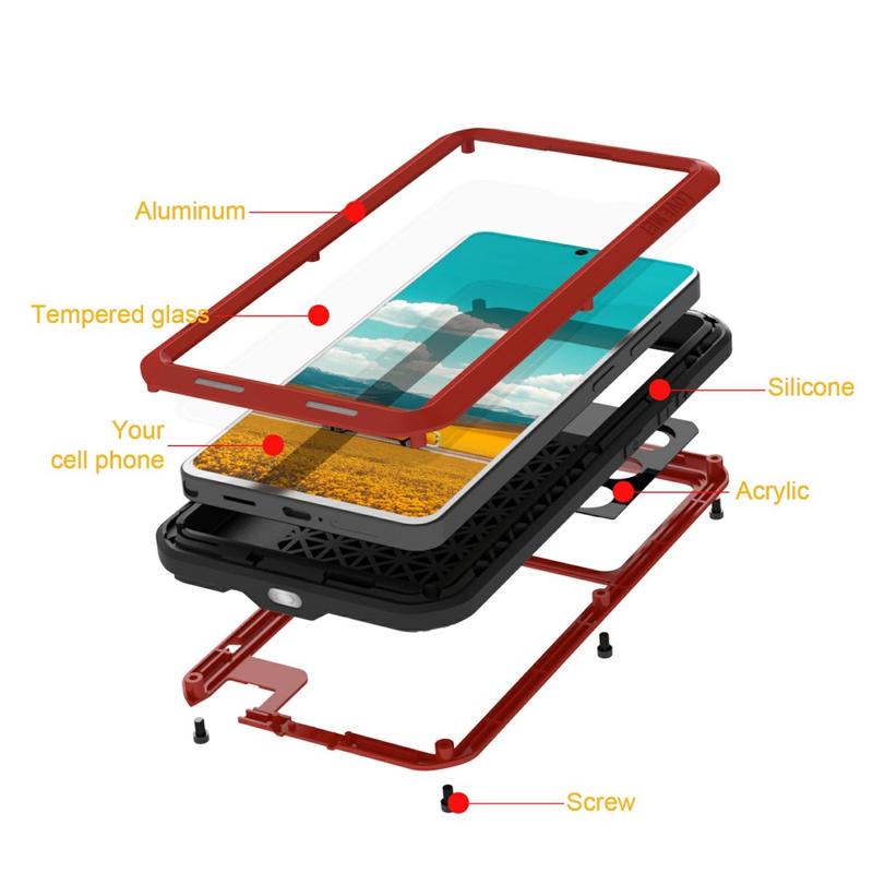 - Konstrukcja z blokadą śrubową - wzmocniona bezpiecznymi narożnikami z blokadą śrubową, które mocno uszczelniają obudowę, zapewniając ochronę telefonu podczas upadków, wstrząsów i nieostrożnego obchodzenia się z nim.
