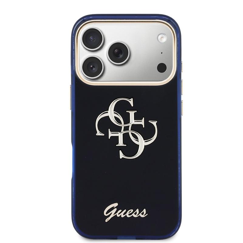 Etui Guess IML 4G Script Metal Logo do iPhone 17 Pro Max - wysokiej jakości etui z metalowym logo, ochroną z tworzywa PC i TPU