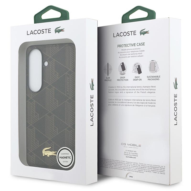 Ulepsz swój Samsung Galaxy S26+ dzięki etui, które wygląda elegancko i jest praktyczne w codziennym użytkowaniu. Etui magnetyczne Lacoste PVC Blend Monogram łączy w sobie eleganckie wykończenie monogramem z kultowym złotym logo krokodyla, nadając telefonowi stylowy, charakterystyczny wygląd, a jednocześnie zapewniając niezawodną ochronę przed zarysowaniami i codziennym zużyciem. Lekka mieszanka PVC sprawia, że etui jest smukłe, a miękka w dotyku powierzchnia została zaprojektowana tak, aby zapewnić wygodny i pewny chwyt, zmniejszając ryzyko wyślizgnięcia się telefonu podczas ruchu.