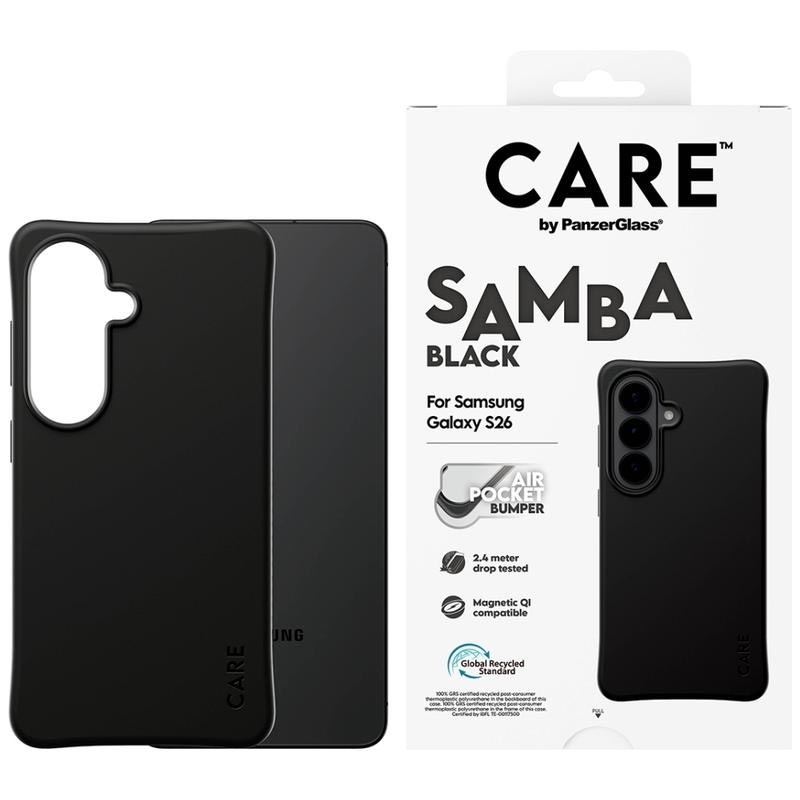 Etui magnetyczne Care by PanzerGlass Samba do Samsung Galaxy S26 - w 100% z recyklingowanego TPU, samonaprawiające się, przetestowane na upadki z wysokości 2,4 m, kompatybilne z Qi