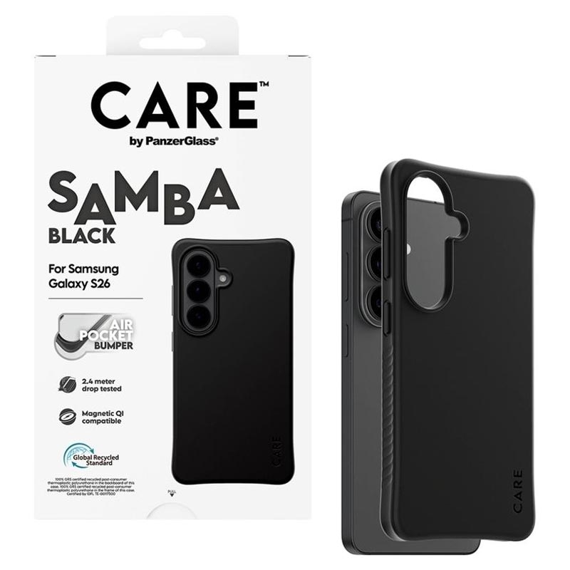 Nadaj swojemu Samsungowi Galaxy S26 stylowy wygląd, jednocześnie zapewniając mu ochronę każdego dnia. Etui CARE by PanzerGlass Qi Samba jest wykonane w 100% z przetworzonego TPU i zaprojektowane tak, aby wytrzymać codzienne uderzenia, upadki i zadrapania bez utraty komfortu użytkowania. Ulepszona ochrona narożników pomaga amortyzować uderzenia, a gładkie wykończenie zapewnia doskonały chwyt i sprawia, że Samsung Galaxy S26 jest łatwiejszy do trzymania.