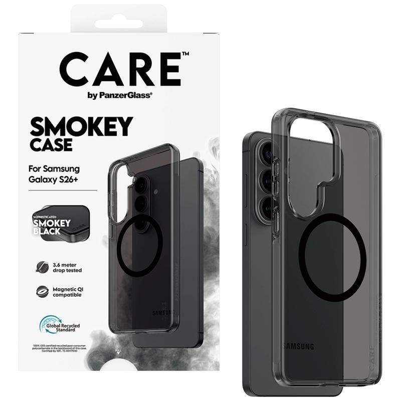 Etui magnetyczne Care by PanzerGlass Urban Explorer Smokey do telefonu Samsung Galaxy S26+ - w 100% z tworzywa sztucznego pochodzącego z recyklingu, przetestowane pod kątem upadków z wysokości 3,6 m, gwarancja odporności na żółknięcie, wzmocniona ochrona aparatu
