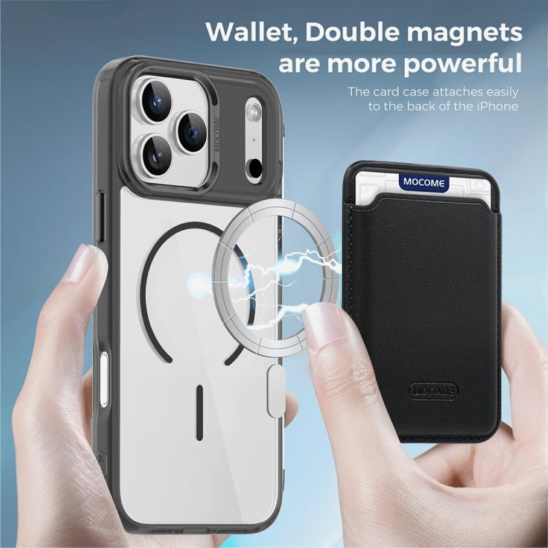 Etui magnetyczne do iPhone 17 Pro Max - kompatybilne z MagSafe etui TPU / PC z podwójnym magnesem i wąskim uchwytem na kartę