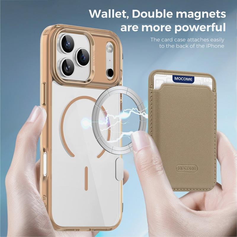 Chroń swoje urządzenie stylowo dzięki etui MagSafe do iPhone 17 Pro Max, zaprojektowanemu z myślą zarówno o trwałości, jak i wygodzie. Zbudowane z hybrydowej konstrukcji TPU + PC, etui łączy elastyczność z wytrzymałością, chroniąc przed upadkami, zadrapaniami i codziennym zużyciem. Zintegrowany pierścień magnetyczny sprawia, że jest w pełni kompatybilny z ładowaniem MagSafe i magnetycznymi uchwytami samochodowymi, a odłączana smukła torba na karty z podwójnym magnesem pozwala nosić 1-2 karty bez zwiększania objętości. Krystalicznie przejrzyste wykończenie sprawia, że iPhone 17 Pro Max wygląda elegancko i oryginalnie, a wzmocnione krawędzie i podniesione ramki zapewniają wszechstronną ochronę ekranu i aparatu.