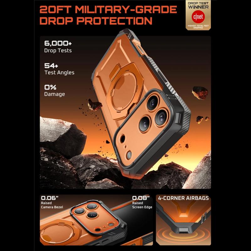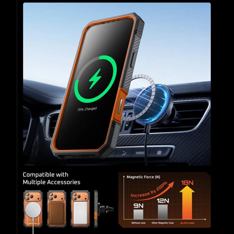 Etui SUPCASE Unicorn Beetle Grip Pro Mag do iPhone 17 Pro Max zostało zaprojektowane dla tych, którzy wymagają trwałości i funkcjonalności. Zbudowany z odpornego na uderzenia TPU i wzmocnionych narożników, spełnia standard MIL-STD 810G, chroniąc urządzenie przed upadkami z wysokości do 15 stóp, jednocześnie chroniąc je przed zadrapaniami i codziennym zużyciem.