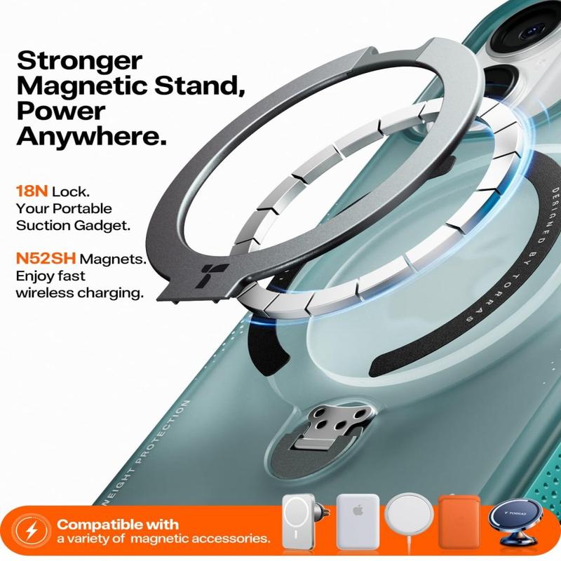 Etui MagSafe Torras Ostand Q3 Air do iPhone 17 - podpórka 360, ochrona poduszką powietrzną AirMAX, mocny uchwyt magnetyczny