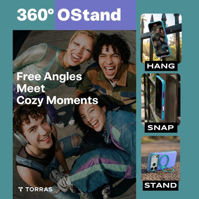 Etui MagSafe Torras O3 Hue do iPhone 17 Pro Max - ochronne etui z tworzywa PC/TPU z magnetyczną podpórką 360°