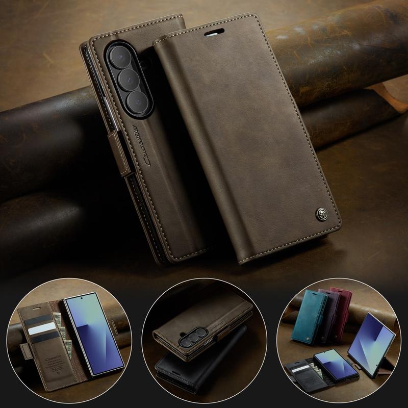 Etui CASEME 033 Series Wallet Case do Samsunga Galaxy Z Fold7 jest wykonane z poliuretanu o fakturze cielęcej w połączeniu z TPU, oferując pełną ochronę ciała przed zadrapaniami, uderzeniami i codziennym zużyciem, zachowując jednocześnie elegancki wygląd premium.