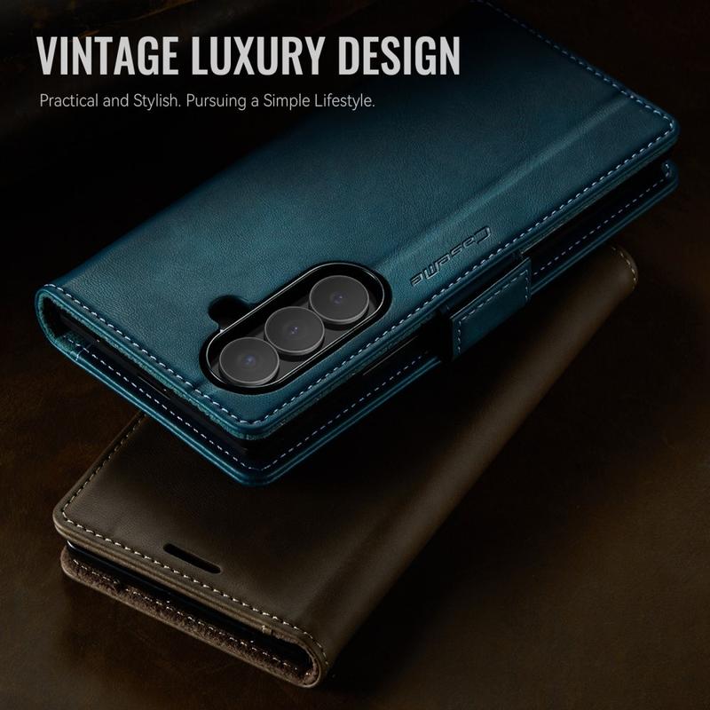 Etui CASEME 033 Series Wallet Case do Samsunga Galaxy Z Fold7 jest wykonane z poliuretanu o fakturze cielęcej w połączeniu z TPU, oferując pełną ochronę ciała przed zadrapaniami, uderzeniami i codziennym zużyciem, zachowując jednocześnie elegancki wygląd premium.