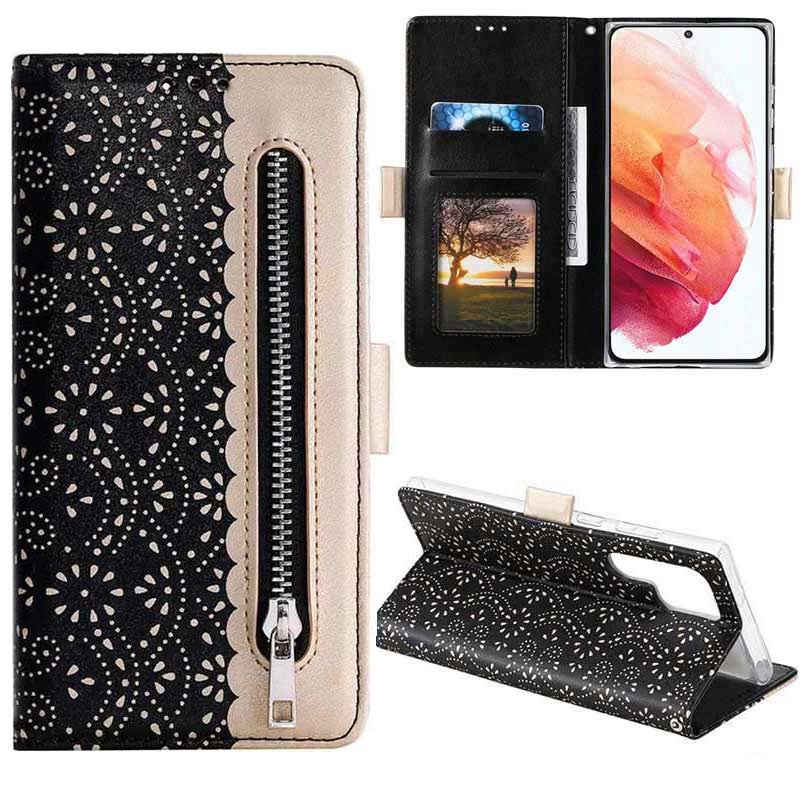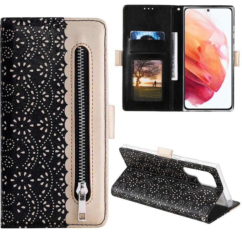 - Etui-portfel z koronkowym wzorem, do telefonu Samsung Galaxy S22 Ultra 5G