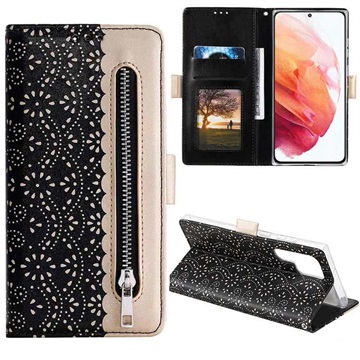 Zachowaj swojego pięknego Samsunga Galaxy S22 Ultra 5G w idealnym stanie dzięki temu eleganckiemu etui z koronkowym wzorem. Oprócz telefonu możesz przechowywać w nim wszystkie niezbędne karty, a także pieniądze.