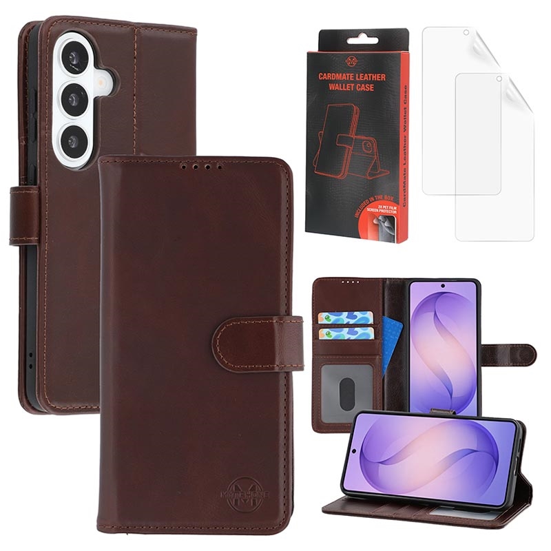 MyTPhone CardMate Premium Etui portfelowe ze skóry do Samsung Galaxy S26+ - funkcja podstawki, uchwyt na karty, obsługa ładowania bezprzewodowego, 2x ochrona ekranu