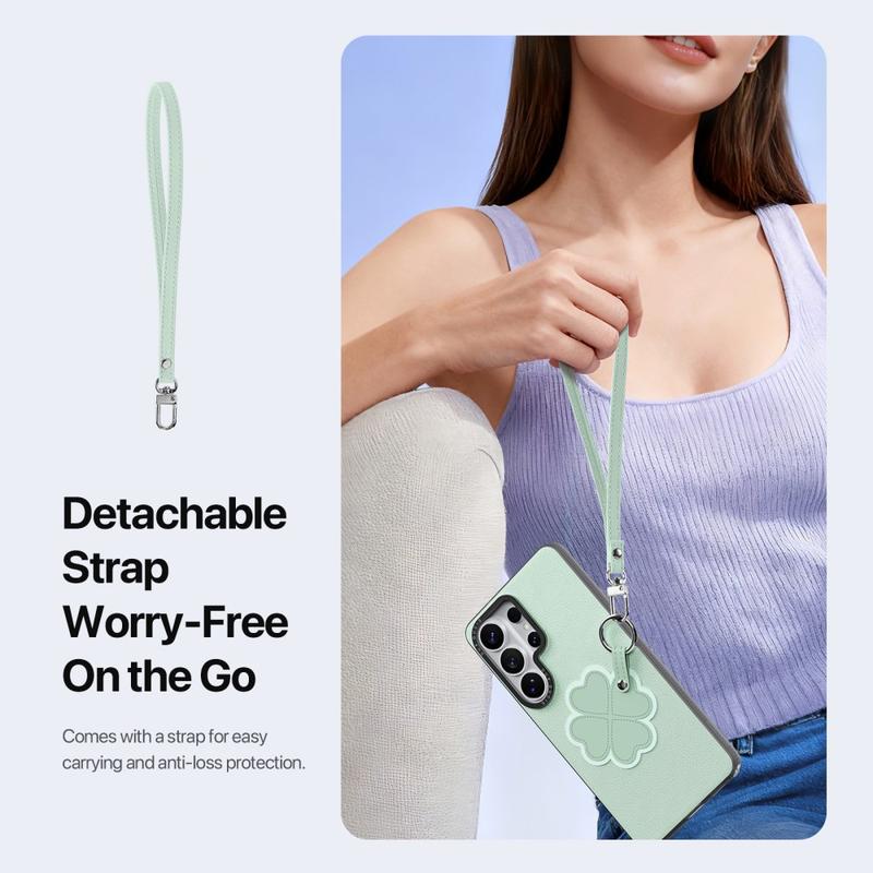 W zestawie znajduje się odpinany pasek ułatwiający przenoszenie podczas podróży, dojazdów do pracy lub codziennych czynności. Zapewnia on dodatkowe zabezpieczenie przed zgubieniem, jednocześnie nadając Samsungowi Galaxy S26 Ultra modnego charakteru.