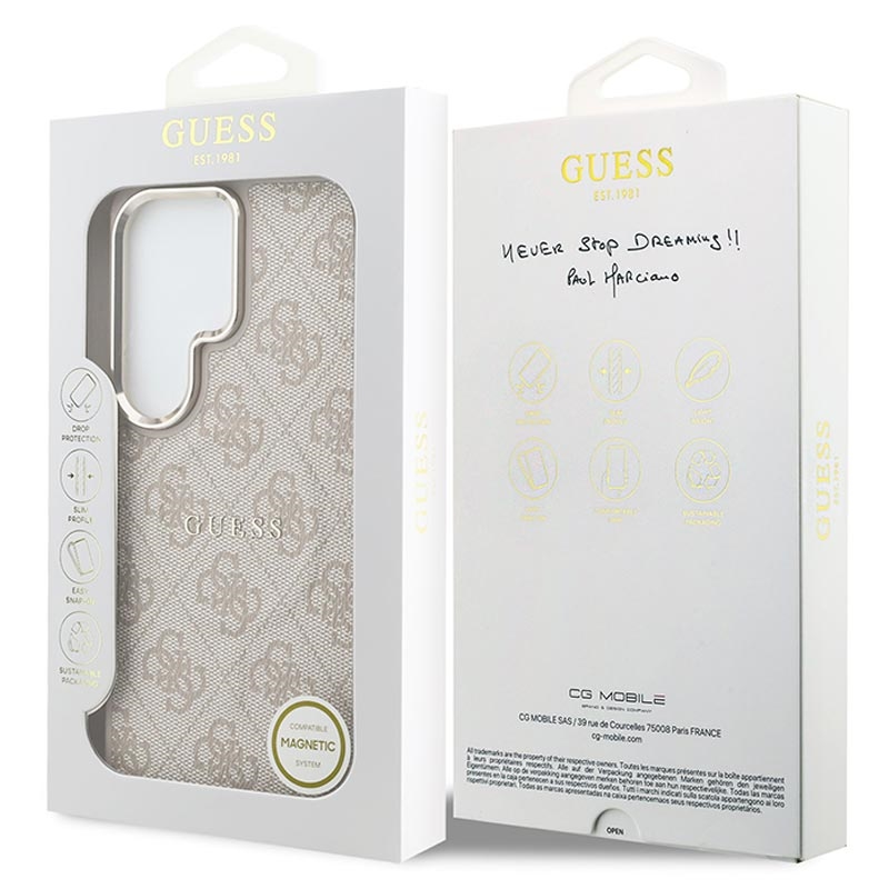 Odśwież swój codzienny wygląd i chroń swój telefon dzięki etui Guess 4G Gold Frame MagSafe do Samsung Galaxy S26 Ultra. Zaprojektowane tak, aby pasowało zarówno do Twojego stylu, jak i codziennych czynności, to smukłe etui łączy w sobie modne wykończenie z niezawodną ochroną na co dzień. Lekka konstrukcja z poliuretanu zapewnia wygodę w dłoni, a przyczepna powierzchnia pomaga zmniejszyć ryzyko wyślizgnięcia się telefonu. Dzięki obsłudze MagSafe możesz nadal korzystać z bezprzewodowego ładowania i akcesoriów MagSafe bez konieczności zdejmowania etui.