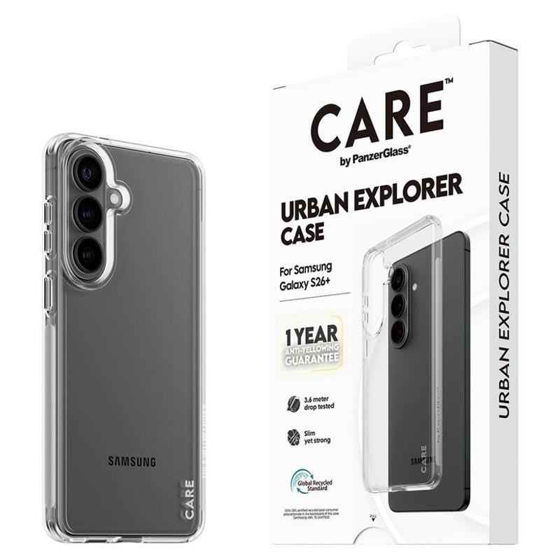 Etui Care by PanzerGlass Urban Explorer do telefonu Samsung Galaxy S26+ - przetestowane pod kątem upadków z wysokości 3,6 m, wykonane w 100% z tworzywa sztucznego pochodzącego z recyklingu, odporne na żółknięcie