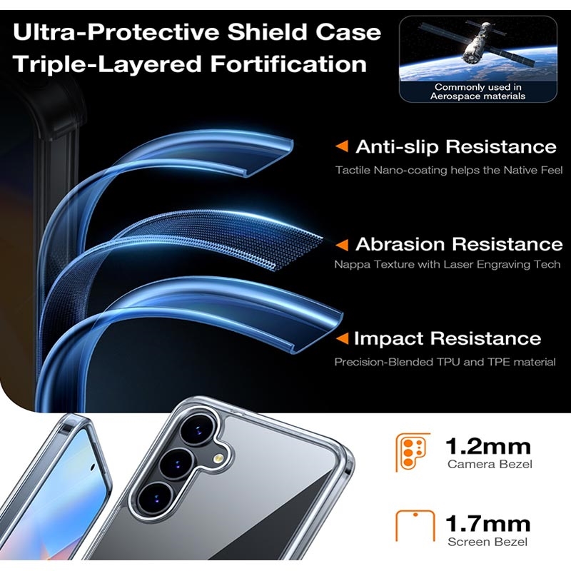 Zbudowane z wewnętrznej struktury rozpraszającej wstrząsy i wzmocnionego zderzaka z TPU, etui pomaga zmniejszyć siłę uderzeń i upadków. Zintegrowane strefy poduszki powietrznej zapewniają dodatkową ochronę podczas codziennego użytkowania bez zbędnego zwiększania grubości.