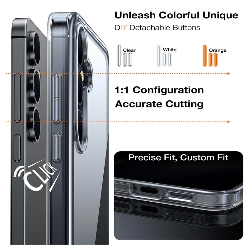 Etui zawiera trzy wymienne zestawy kolorów przycisków, dzięki czemu możesz spersonalizować wygląd swojego Samsunga Galaxy S26. Z łatwością wymieniaj przyciski, aby dopasować je do swojego stylu, stroju lub nastroju i stworzyć niepowtarzalny, spersonalizowany wygląd.