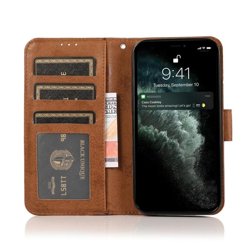 Wykonane z matowego poliuretanu w stylu retro z miękką wewnętrzną powłoką z TPU, etui to zapewnia wygodę w dotyku i niezawodną ochronę przed codziennymi zadrapaniami, uderzeniami i zużyciem. Wbudowany portfel zawiera 3 przegródki na karty i kieszeń na gotówkę, co ułatwia przenoszenie niezbędnych rzeczy w jednym miejscu. Składana konstrukcja działa również jako podstawka, zapewniając wygodniejszy kąt widzenia bez użycia rąk podczas oglądania filmów, przeglądania stron internetowych lub prowadzenia rozmów.