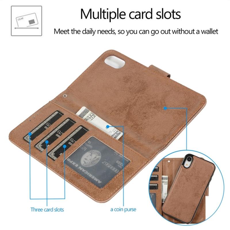 Etui-portfel w stylu vintage 2 w 1 z odpinanym klapką na magnes dla iPhone XR