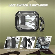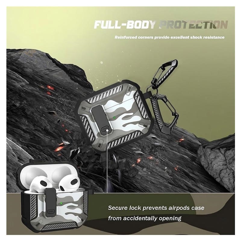 Odporne na wstrząsy etui z TPU w kamuflażu z karabińczykiem do AirPods 4 - z obsługą ładowania bezprzewodowego