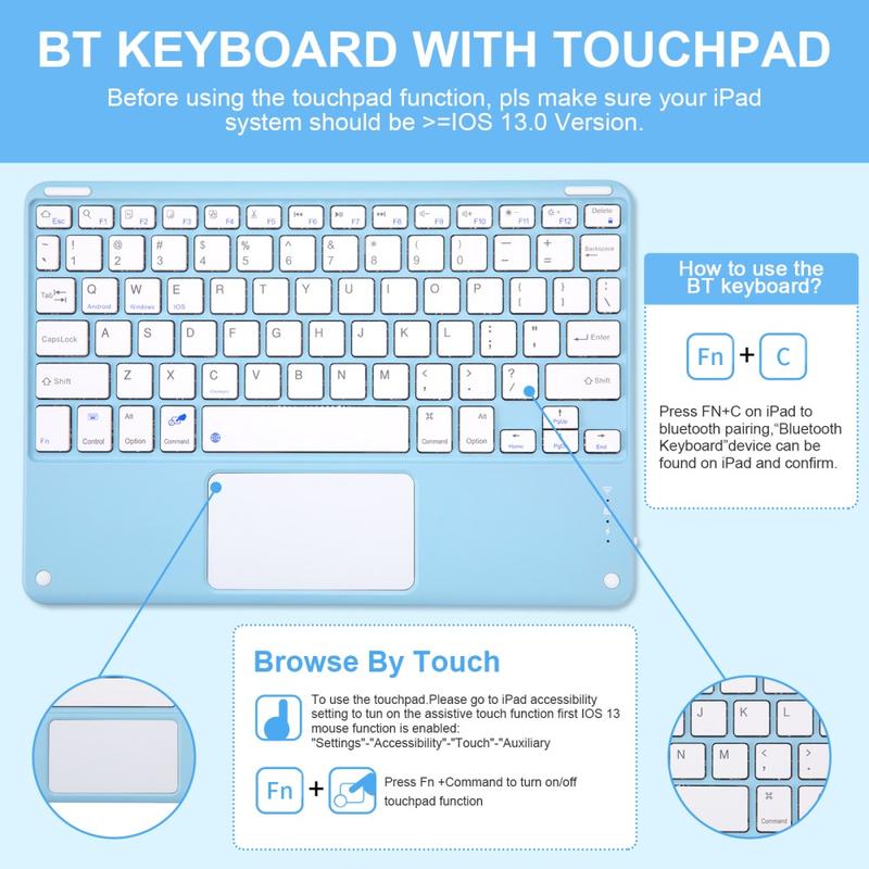 iPad Air 11 2026/2025/2024, iPad Air 2022/2020 Etui z klawiaturą Bluetooth, podświetleniem, touchpadem i podstawką - Układ klawiatury US