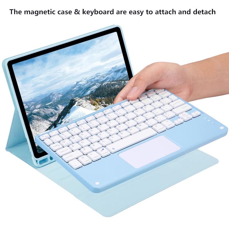 Wzbogać swój iPad Air 11 2026/2025/2024, iPad Air 2022/2020 o etui z klawiaturą Bluetooth, wielofunkcyjne akcesorium 2 w 1, które łączy w sobie ochronę, produktywność i styl. Wykonane z wysokiej jakości poliuretanu, to eleganckie etui zapewnia pełną ochronę przed zadrapaniami, wstrząsami i odciskami palców, zachowując jednocześnie profesjonalny wygląd. Klawiatura Bluetooth łączy się bezprzewodowo, zapewniając płynne i responsywne pisanie, a zintegrowany touchpad obsługuje sterowanie wieloma gestami, zapewniając łatwą nawigację. Podświetlana klawiatura umożliwia wygodne pisanie nawet przy słabym oświetleniu. Wbudowana regulowana podstawka zapewnia ergonomiczny kąt widzenia, dzięki czemu idealnie nadaje się do pisania, przesyłania strumieniowego lub czytania. Zaprojektowane z myślą o biznesie, podróży lub codziennym użytkowaniu, to etui z klawiaturą przekształca tablet w przenośną stację roboczą.