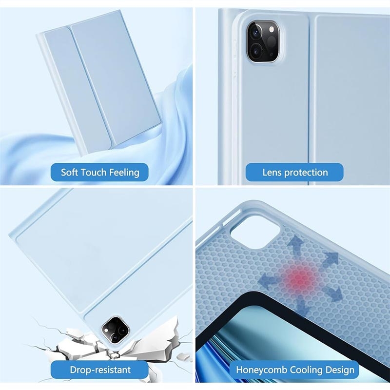 Etui z klawiaturą do tabletu iPad Air 13 2026/2025/2024, iPad Pro 12.9 2022/2021/2020/2018 łączy w sobie funkcjonalność i elegancję. Jest idealny dla profesjonalistów, studentów i podróżników poszukujących wygodnego pisania, pełnej ochrony urządzenia i inteligentnej nawigacji w jednym kompaktowym akcesorium.