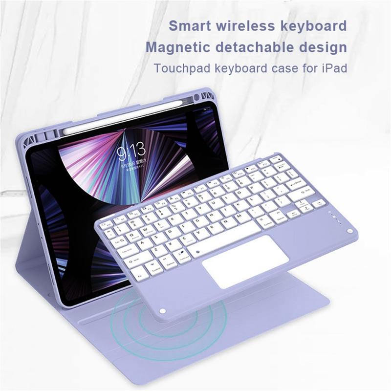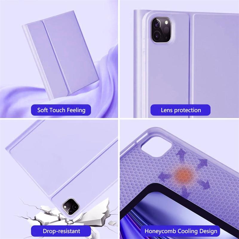 Etui z klawiaturą do tabletu iPad Air 13 2026/2025/2024, iPad Pro 12.9 2022/2021/2020/2018 łączy w sobie funkcjonalność i elegancję. Jest idealny dla profesjonalistów, studentów i podróżników poszukujących wygodnego pisania, pełnej ochrony urządzenia i inteligentnej nawigacji w jednym kompaktowym akcesorium.