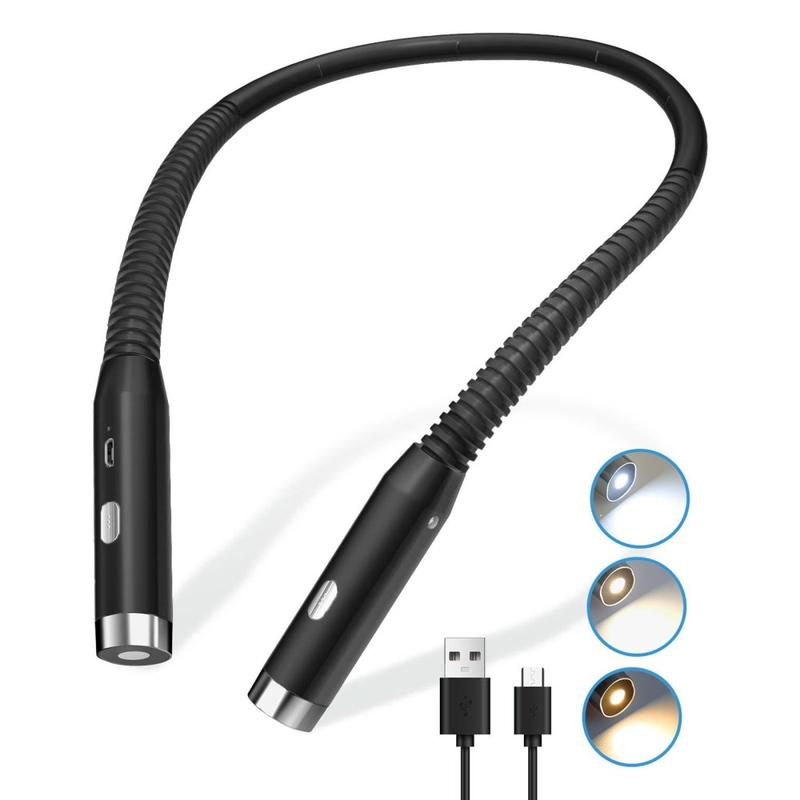 Lampka do czytania na szyję F4 LED - ładowalna, przyjazna dla oczu, elastyczna 360°, bez użycia rąk