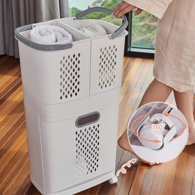 F867 Kosz na pranie z 3 koszami i kółkami - wolnostojący, przenośny organizer na ubrania