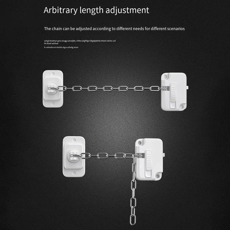 Regulowana łańcuchowa blokada bezpieczeństwa FT756 została zaprojektowana do zabezpieczania okien, szuflad, szafek i drzwi przesuwnych, pomagając zapobiegać przypadkowym upadkom lub urazom niemowląt i zwierząt domowych. Dzięki mocnemu łańcuchowi ze stali nierdzewnej i wytrzymałej konstrukcji ABS, zapewnia niezawodną ochronę bez uszczerbku dla wentylacji i wygody.