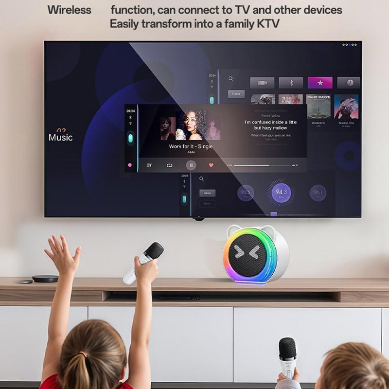 Głośnik do karaoke Bluetooth YESIDO YSW36, zaprojektowany z uroczymi akcentami w kształcie uszu i dwoma mikrofonami, zapewnia niekończącą się muzyczną rozrywkę. Kompaktowy, kolorowy i łatwy w użyciu, jest idealnym towarzyszem imprez dla dzieci, spotkań rodzinnych lub codziennej zabawy w śpiewanie.