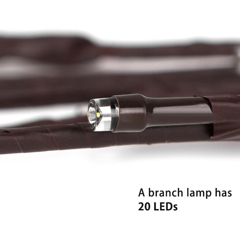 Gałązka choinkowa z 20 diodami LED - zasilane bateryjnie, giętkie lampki dekoracyjne na Boże Narodzenie, imprezy i wystrój domu