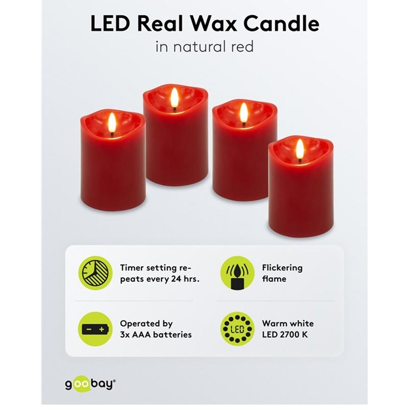 Świece woskowe LED Goobay - płomień 3D, funkcja timera, ciepła biel 2700 K, zasilanie bateryjne