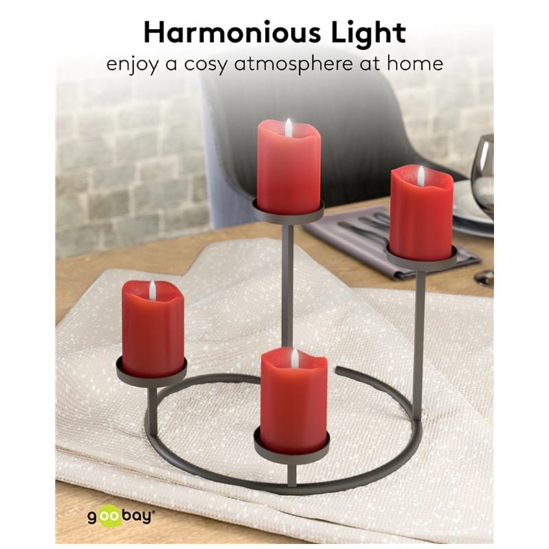 Zestaw 4 świec LED z prawdziwego wosku firmy Goobay doda klasycznego uroku każdej przestrzeni. Wykonane z prawdziwego wosku i wyposażone w stożki płomieni 3D, tworzą pięknie realistyczny efekt migotania, który oddaje ciepło tradycyjnych świec - bez sadzy, ciepła i ryzyka pożaru. Ciepła, biała poświata o temperaturze 2700 K zapewnia przytulną atmosferę odpowiednią do całorocznego wystroju, od kameralnych kolacji po uroczyste obchody Bożego Narodzenia. Dzięki automatycznemu 6-godzinnemu timerowi i zasilaniu bateryjnemu, świece te zapewniają bezproblemową atmosferę wszędzie tam, gdzie prawdziwe płomienie mogą być niebezpieczne lub niedozwolone.