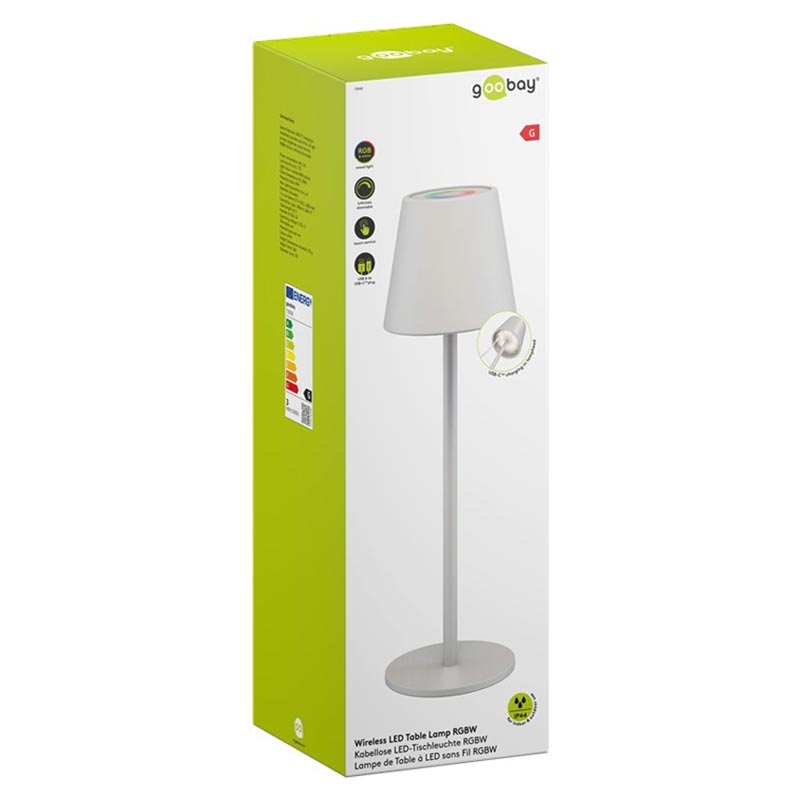 Lampa stołowa Goobay Wireless LED RGBW - sterowanie dotykowe, ciepła biel 3000 K + kolory RGB, płynna regulacja jasności, ładowanie przez USB-C, IP44
