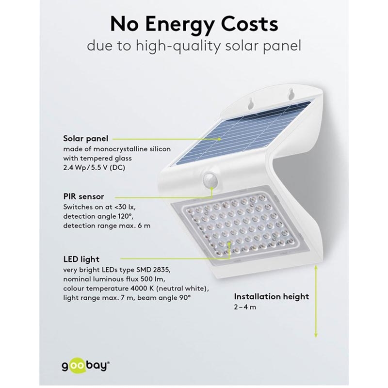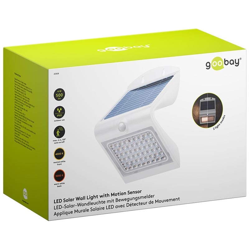 Goobay LED Solarna lampa ścienna 4W z czujnikiem ruchu PIR - wodoodporna zewnętrzna lampa solarna IP65 (500 lm, 4000 K) - wymienna bateria