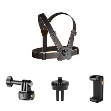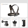 Zestaw pasów piersiowych do kamery sportowej GP-032 - magnetyczna podstawa z szybkim zwalnianiem, mini adapter 1/4" i klips do telefonu do filmowania z perspektywy pierwszej osoby