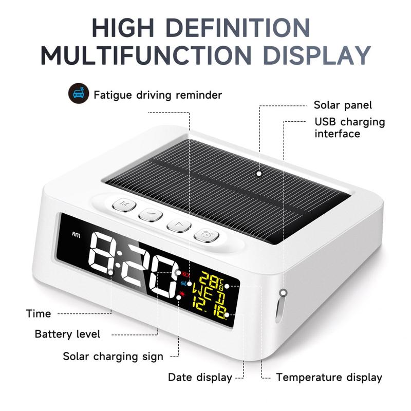 GS-301 Zegar budzik cyfrowy LED zasilany energią słoneczną z wyświetlaczem temperatury i przypomnieniem o zmęczeniu podczas jazdy