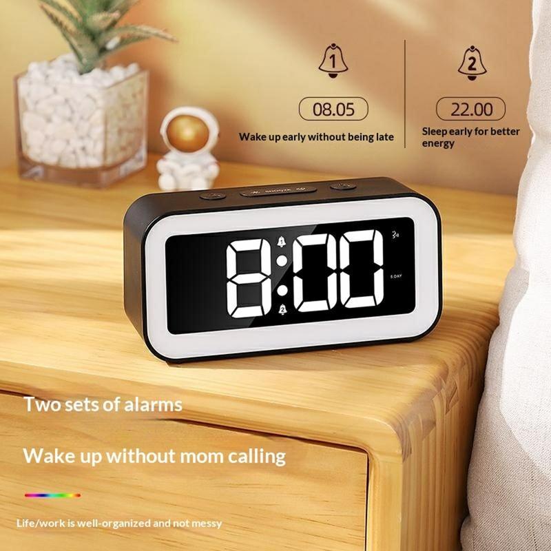 Cyfrowy budzik GS202-2 ma jasny, dynamiczny wyświetlacz RGB i lampkę nocną, które świetnie pasują do nowoczesnego biurka lub stolika nocnego. Możesz wybrać jeden z 4 stałych kolorów lub 3 dynamiczne tryby RGB, żeby dopasować budzik do stylu swojego pokoju.