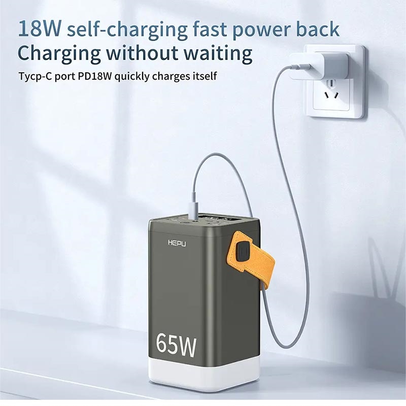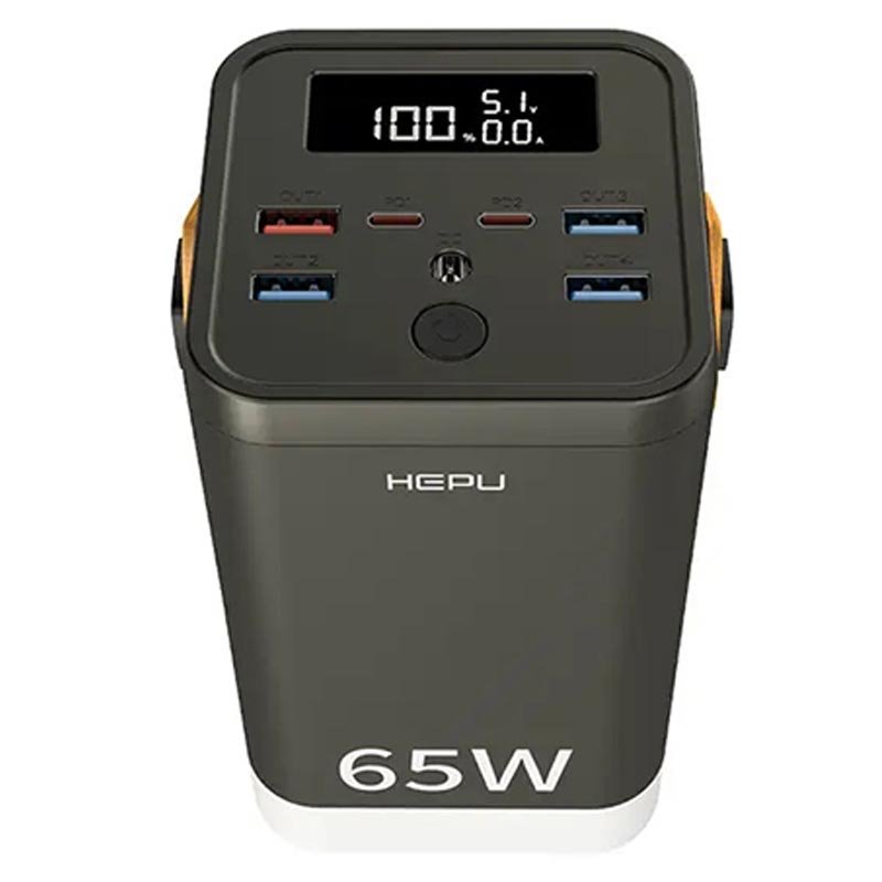 HEPU XXL HP211 to potężny power bank o pojemności 60000 mAh zaprojektowany dla użytkowników, którzy potrzebują wielu portów ładowania i dużej pojemności. Dzięki czterem portom USB-A, dwóm portom USB-C PD i jednemu portowi DC, może on zasilać kilka urządzeń jednocześnie, w tym smartfony, tablety i mniejsze laptopy. Chociaż na papierze obiecuje wsparcie dla szybkiego ładowania 65 W, jego wydajność najlepiej nadaje się dla użytkowników, którzy przedkładają pojemność nad szybkość.