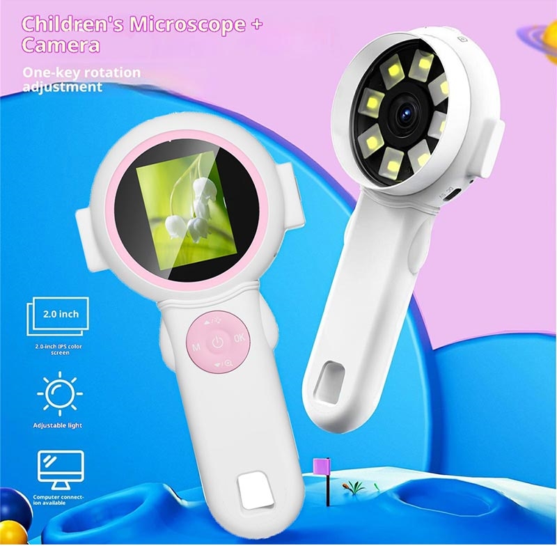 HM020J Lupa cyfrowa dla dzieci / ręczny mini mikroskop i kamera z oświetleniem LED, 2-calowy wyświetlacz IPS