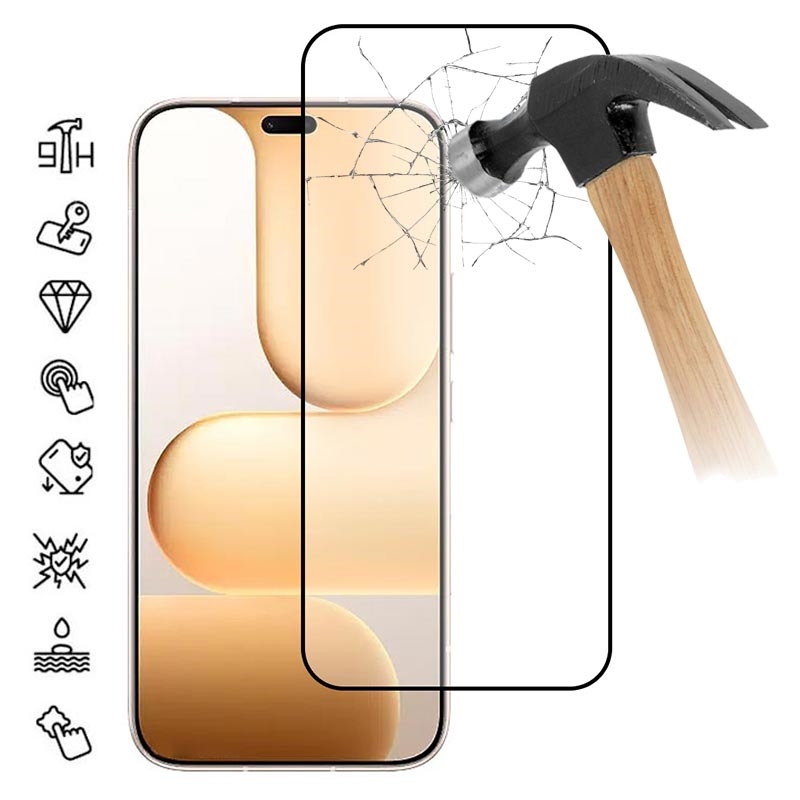 - Wysokiej jakości szkło hartowane o grubości 0,33 mm - twardość 9H odbija klucze, monety i żwir z kieszeni
