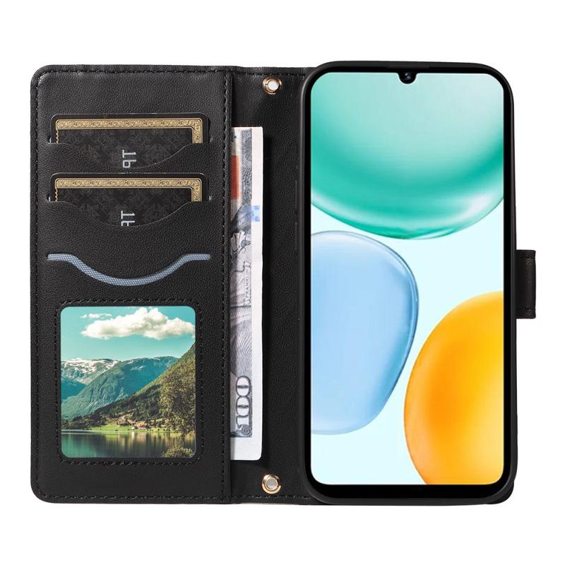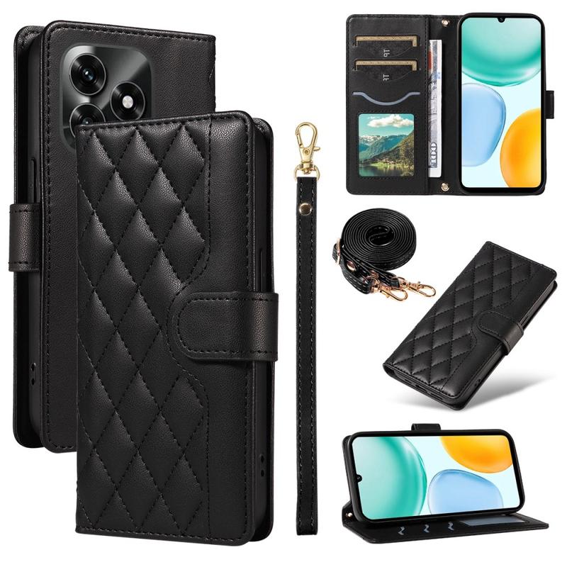 Luksusowe pikowane etui z paskiem na ramię i nadgarstek dla Honor X5c Plus - pokrowiec ochronny z wzorem rombu