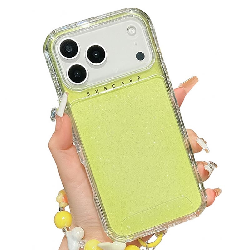 Błyszczące, odporne na wstrząsy hybrydowe etui z paskiem na nadgarstek do iPhone 17 Pro Max - osłona ochronna PC + TPU