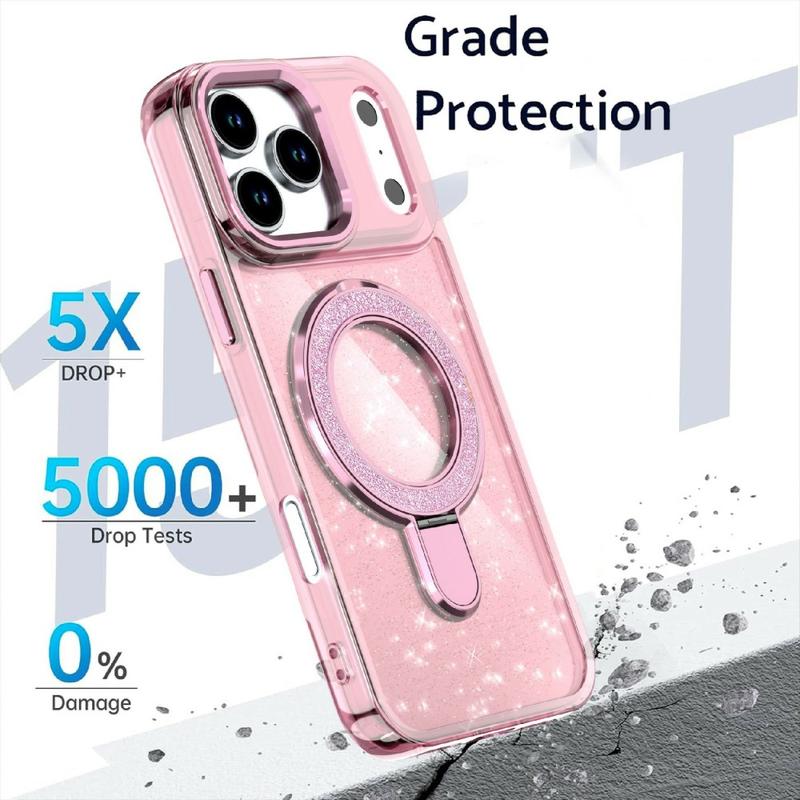 Etui z brokatem do iPhone 17 Pro łączy w sobie styl i ochronę, elegancki blask i niezawodną trwałość na co dzień. Wykonane z wysokiej jakości materiałów i wyposażone we wbudowaną podpórkę z metalowym pierścieniem, etui zapewnia bezpieczeństwo, funkcjonalność i modny wygląd telefonu przez cały dzień.