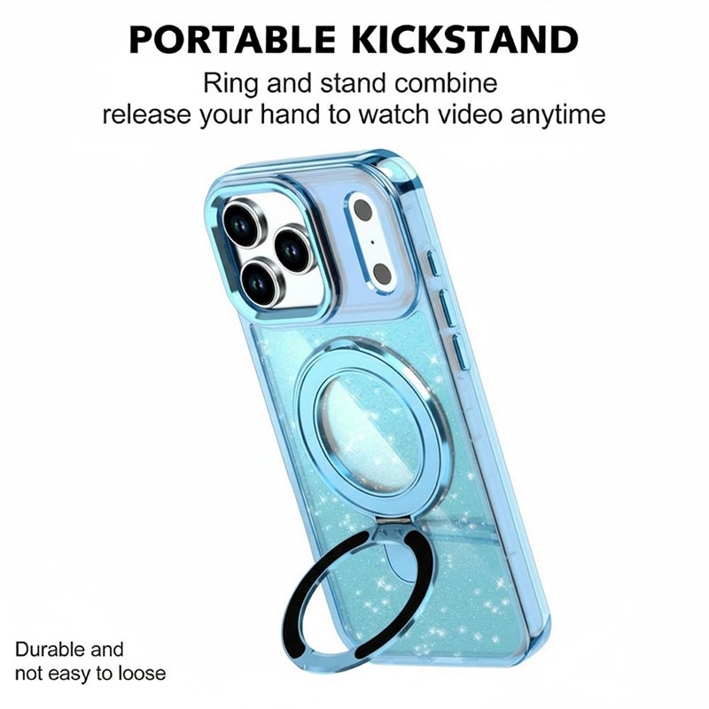 Etui z brokatem do iPhone 17 Pro łączy w sobie styl i ochronę, elegancki blask i niezawodną trwałość na co dzień. Wykonane z wysokiej jakości materiałów i wyposażone we wbudowaną podpórkę z metalowym pierścieniem, etui zapewnia bezpieczeństwo, funkcjonalność i modny wygląd telefonu przez cały dzień.