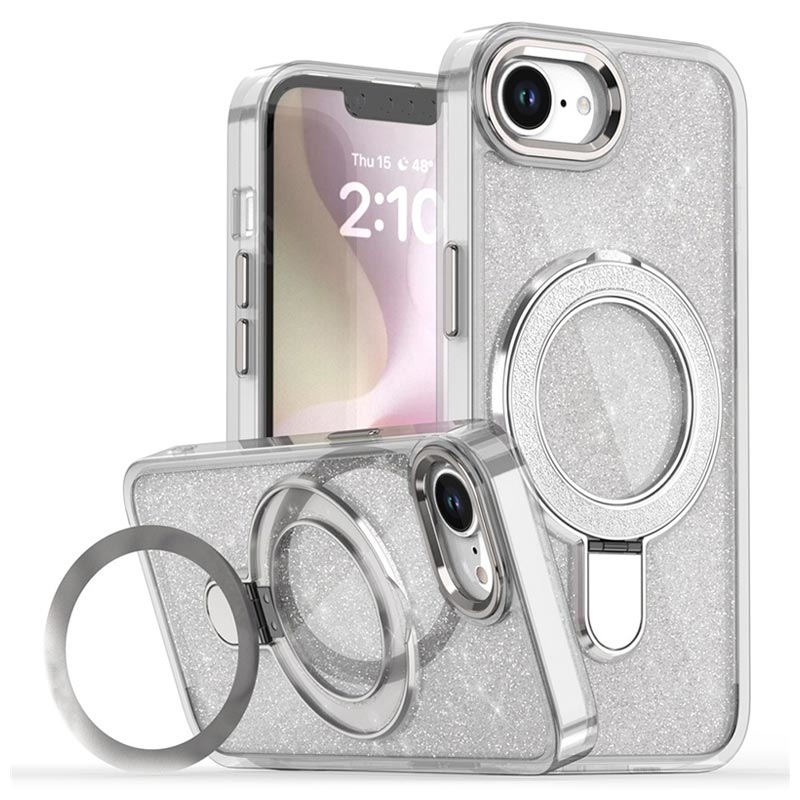 Etui z brokatem do iPhone 16e łączy w sobie styl i ochronę, elegancki blask i niezawodną trwałość na co dzień. Wykonane z wysokiej jakości materiałów i wyposażone we wbudowaną podpórkę z metalowym pierścieniem, etui zapewnia bezpieczeństwo, funkcjonalność i modny wygląd telefonu przez cały dzień.